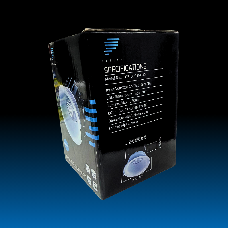 15W LED Dimmable Downlight – Deep Cone, White | 60° Beam | Anti-Glare | Cerian (CE.DLC25A-15)