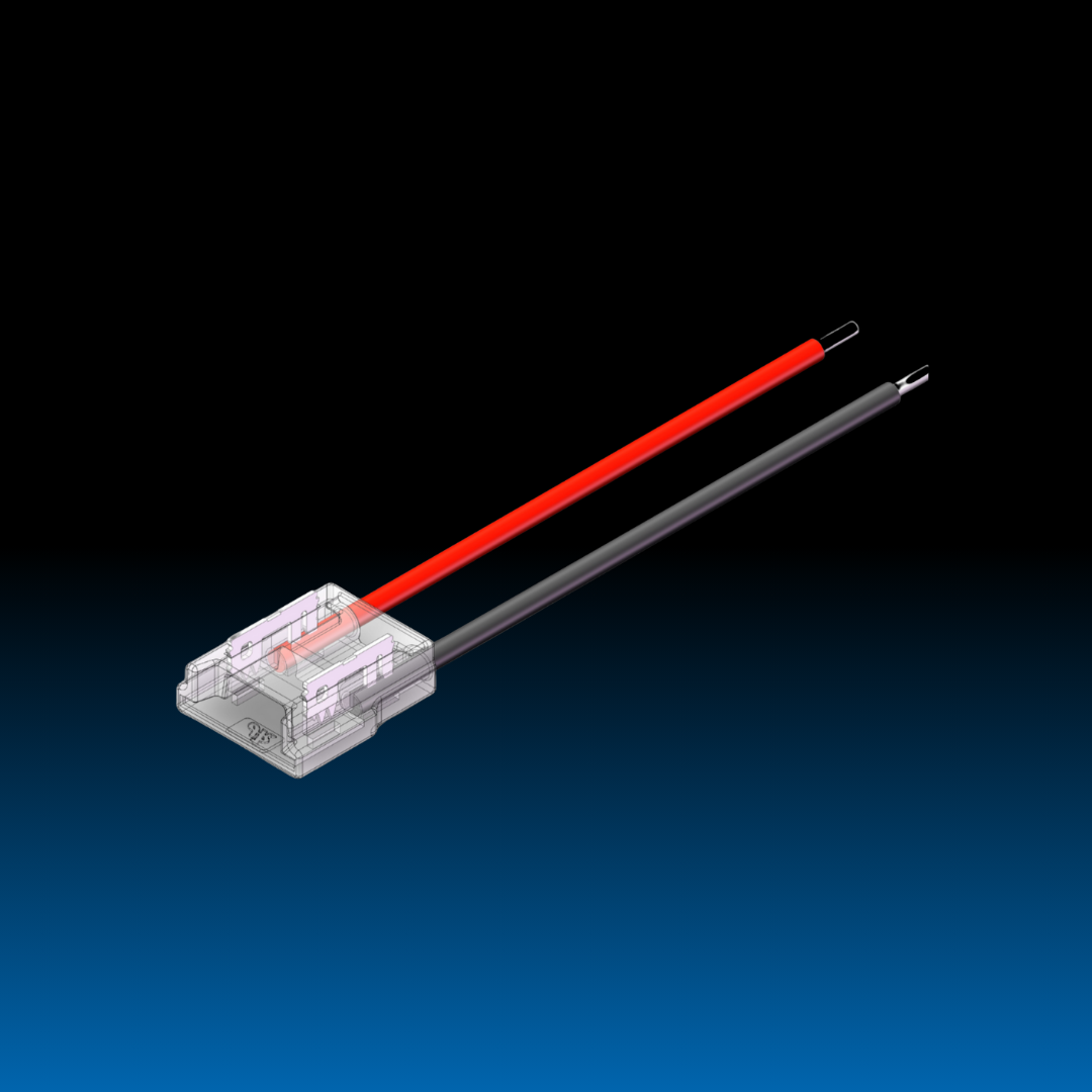Crystal LED strip connector is a transparent PC material connector, mainly suitable for IP20 COB & SMD strip with matching pads. It has the characteristics of reliable connection, invisible seamless lighting, perfect solution for aluminum profile application, and DIY connection without stripping.