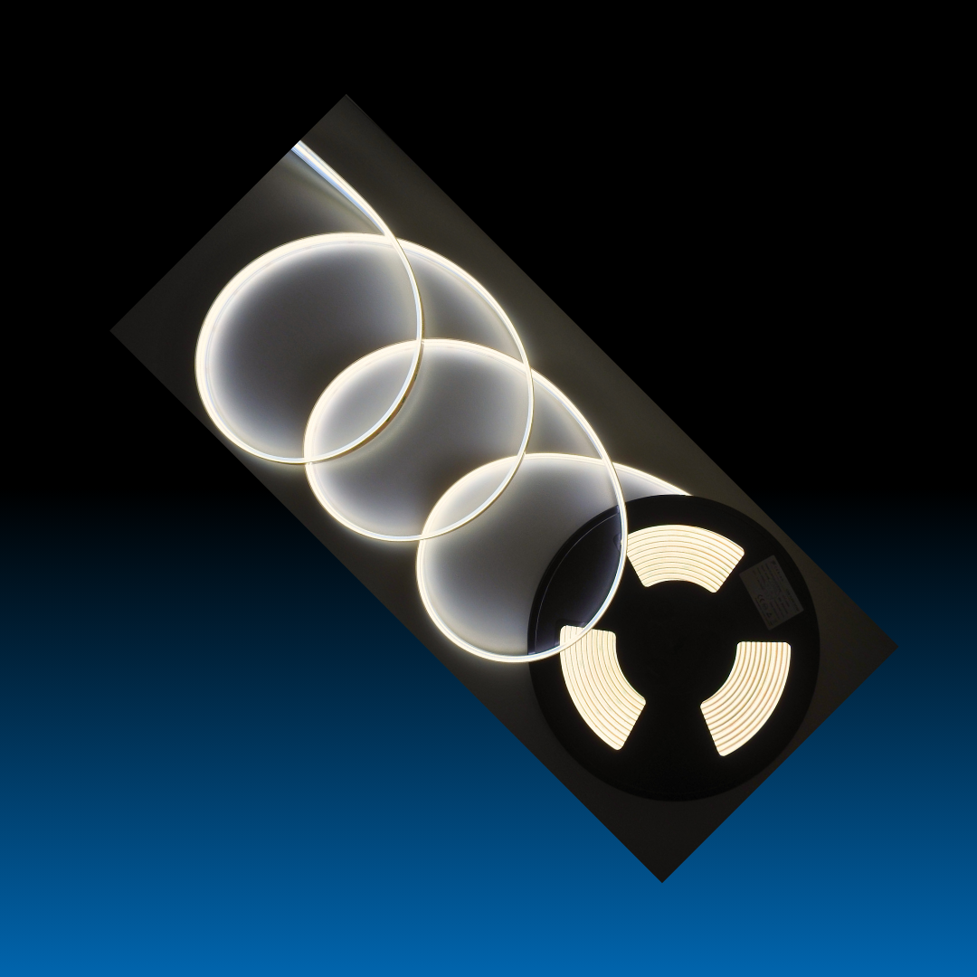The advanced COB (Chip on Board) structure creates a continuous line of light with no visible LED dots, making it perfect for areas where smooth illumination is essential—especially when installed without an aluminium profile.
